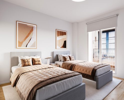 Todas las viviendas de dos y tres dormitorios son exteriores con amplias terrazas y estupendos balcones para vivir el bienestar de las calles de Jaca.