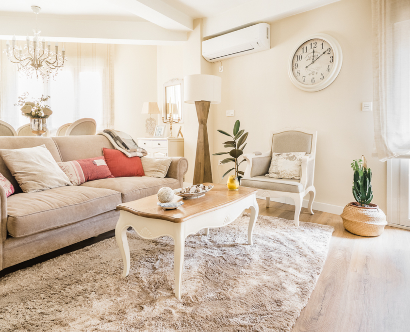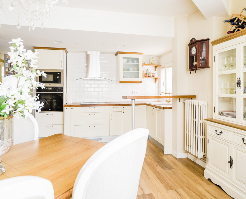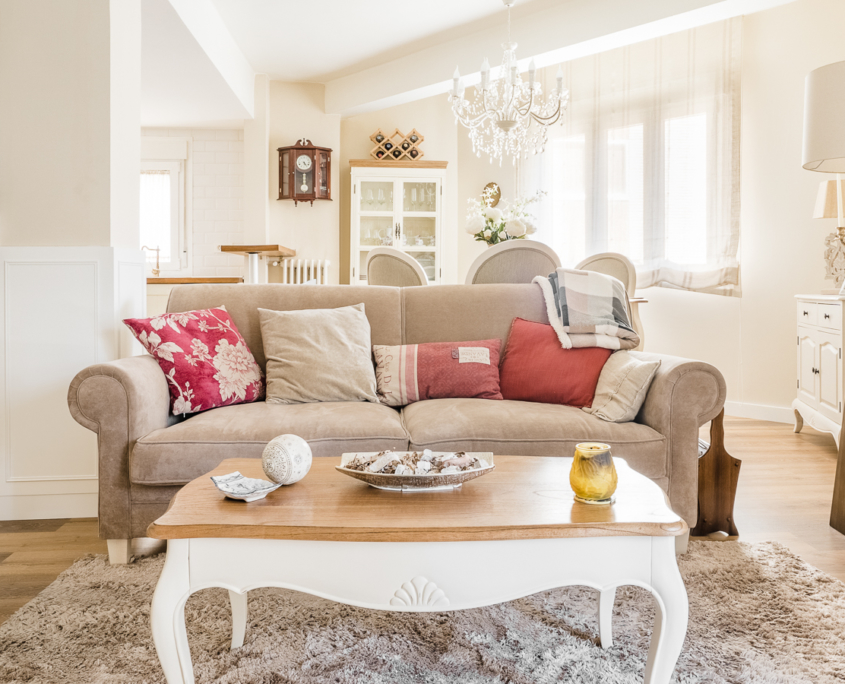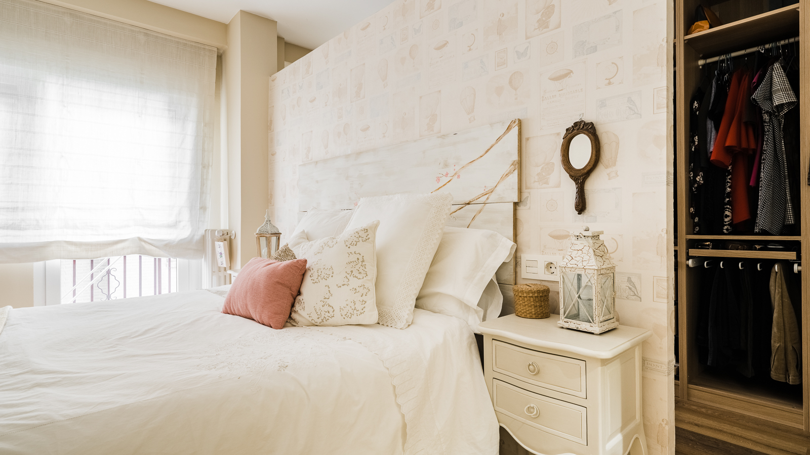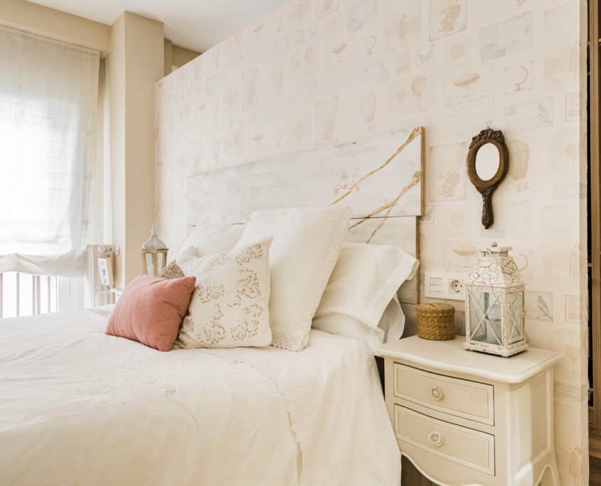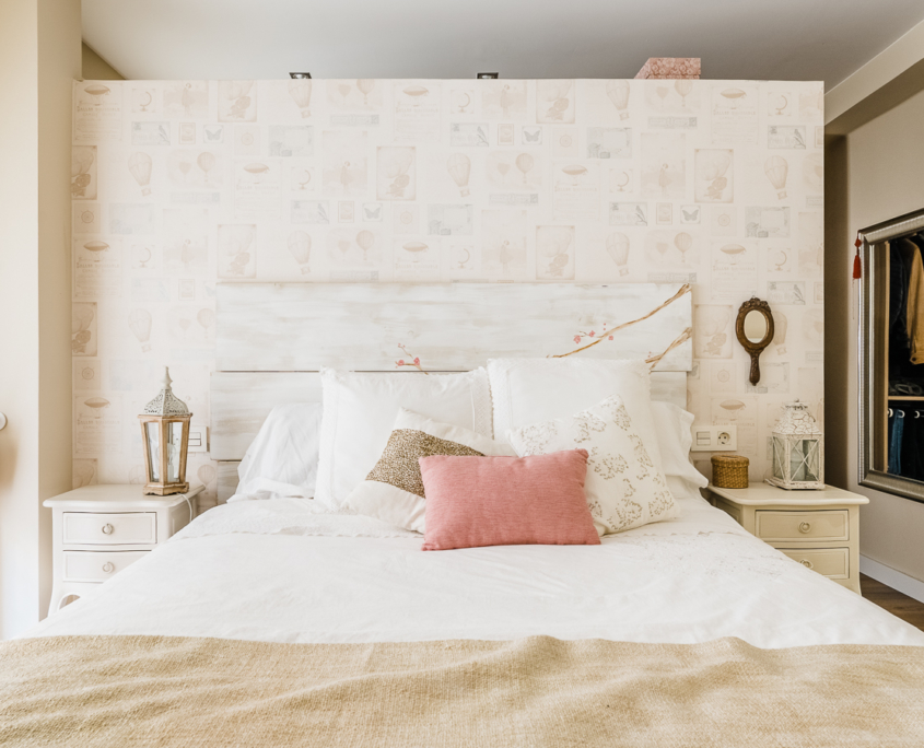 Reforma integral + proyecto de decoración de vivienda integral junto a Plaza de Europa. Se trata de una vivienda de 80 m2, la cual se redistribuyó en salón + cocina americana, 2 dormitorios (el principal con vestidor integrado detrás del cabecero de la cama) y baño con ducha. El estilo decorativo que se eligió es el clásico - chic.