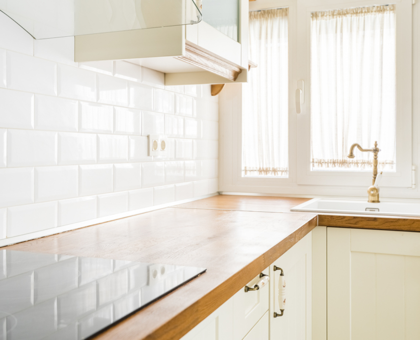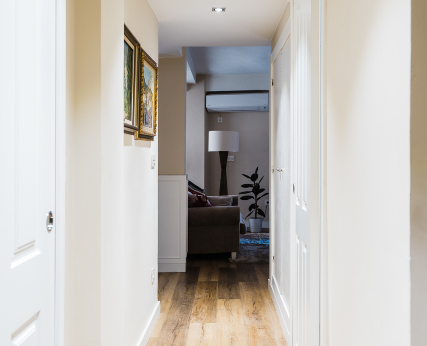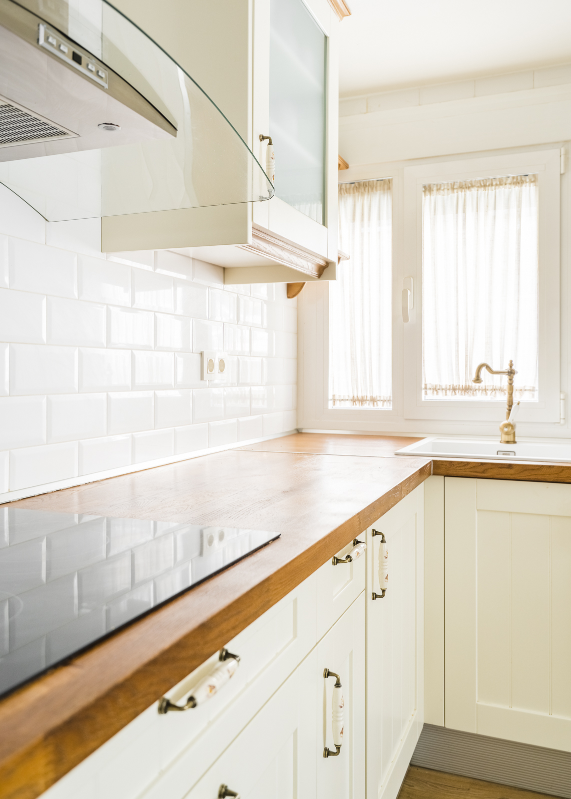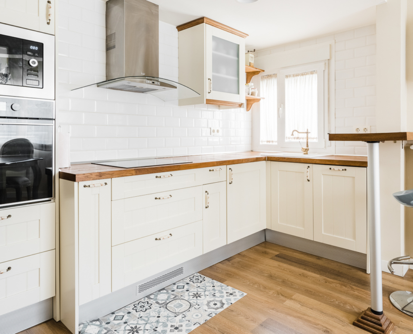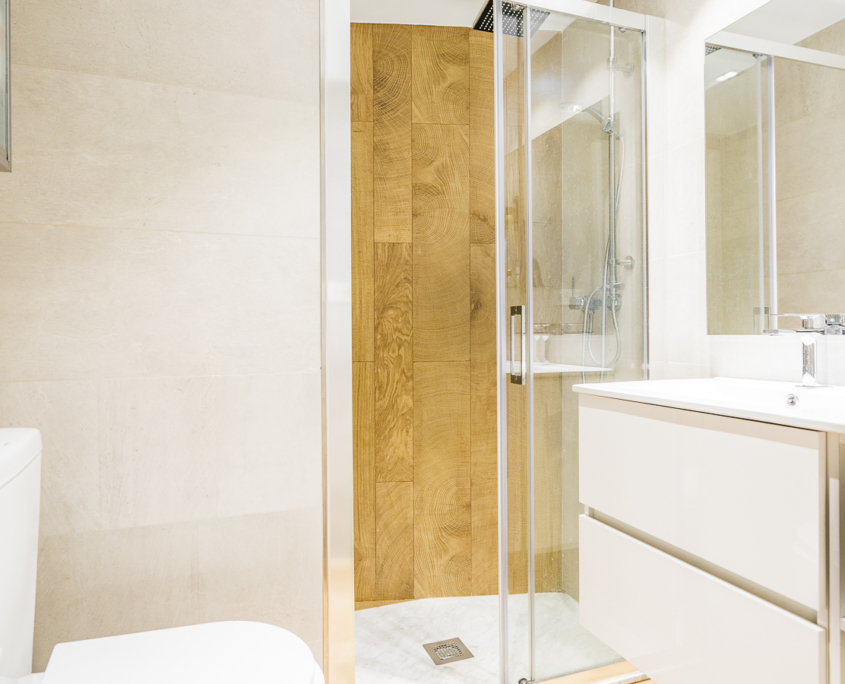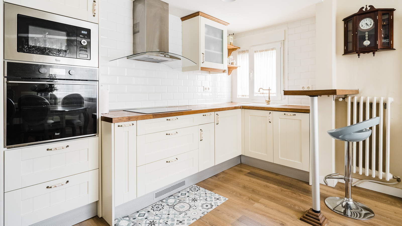 Reforma integral + proyecto de decoración de vivienda integral junto a Plaza de Europa. Se trata de una vivienda de 80 m2, la cual se redistribuyó en salón + cocina americana, 2 dormitorios (el principal con vestidor integrado detrás del cabecero de la cama) y baño con ducha. El estilo decorativo que se eligió es el clásico - chic.